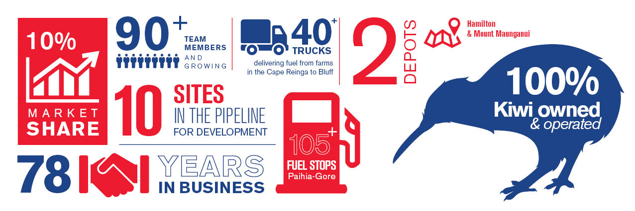 Desmond’s vision was a company built around honesty and integrity and those values remain front of mind today at Waitomo. Following in his father’s footsteps, Grey Ormsby worked tirelessly to ensure Waitomo’s customers benefited from innovative supply solutions, outstanding service, and a fairer fuel price. Now owned by his son Jimmy Ormsby who joined the team in 2003, Waitomo is in rapid national expansion mode. We’re agile, innovative and future-focused.